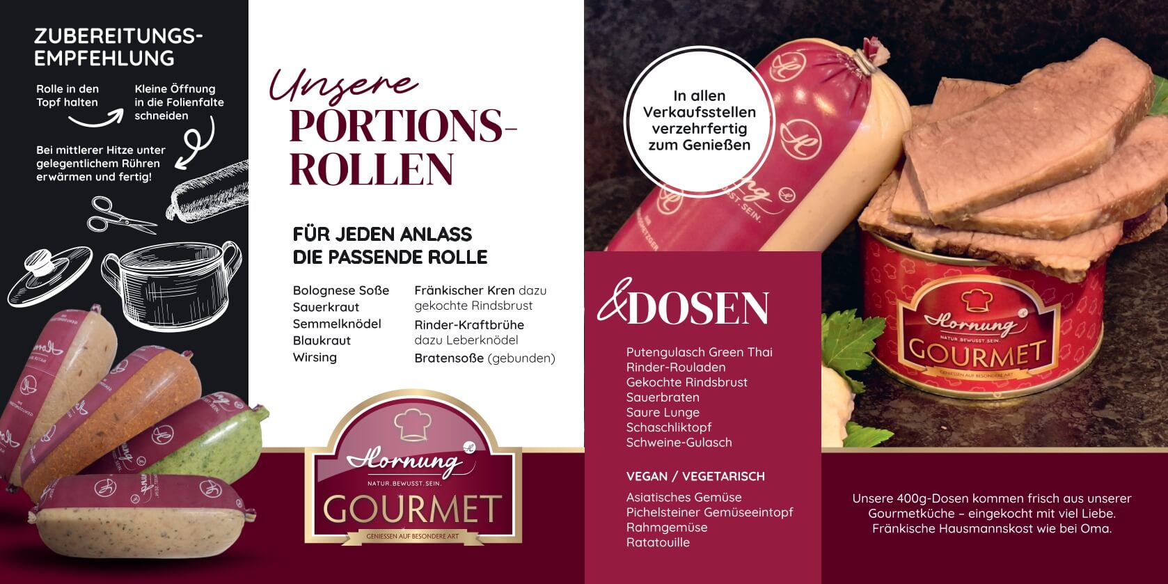 Genuss, der kinderleicht gelingt: In unserer Gourmetküche entsteht fränkische Hausmannskost, frisch gekocht und mit viel Liebe eingekocht – bereit, wann immer Sie es sind. Ob herzhafte Gerichte aus der Portionsrolle oder unsere feinen 400g-Dosen: Unsere Spezialitäten bringen traditionellen Geschmack auf den Tisch, ganz ohne Aufwand.